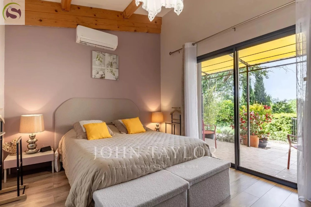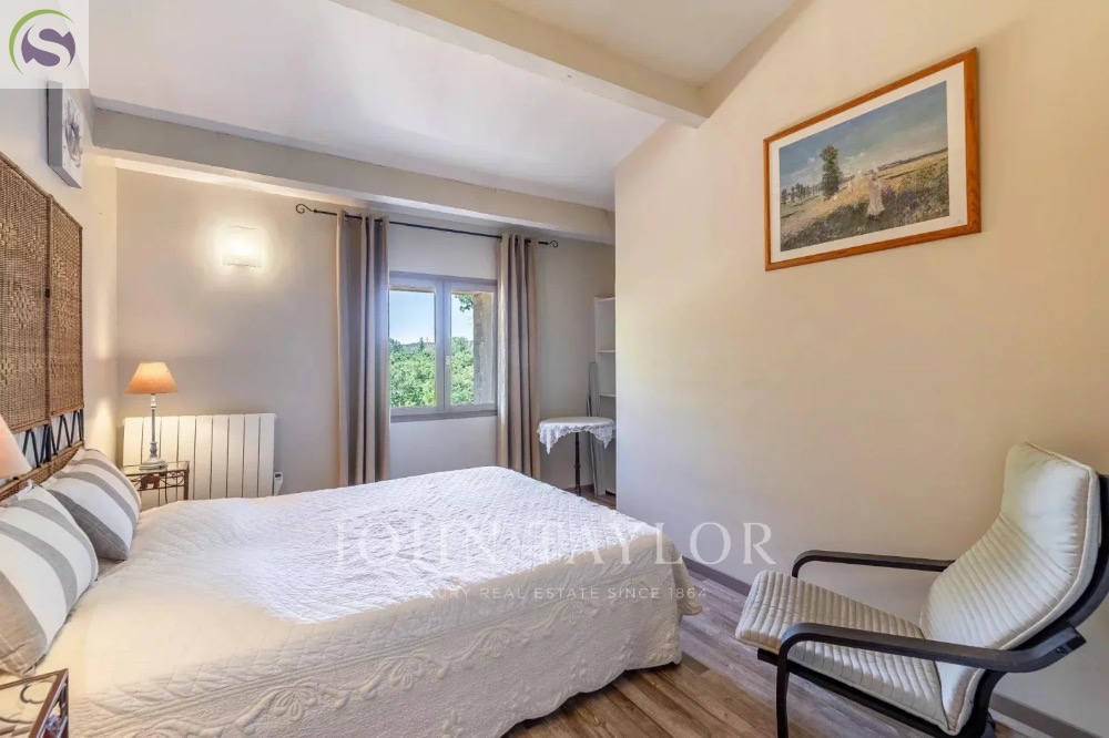 - Un second studio de 36 m², situé dans l’aile est de la propriété, accueille une grande suite récemment rénovée, dotée de baies vitrées, d’une salle d’eau contemporaine, de Wc séparés et d’une terrasse avec vue dégagée.